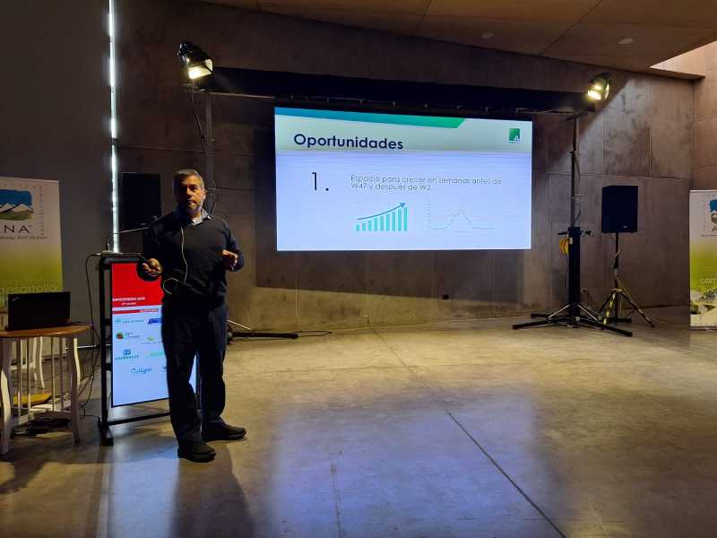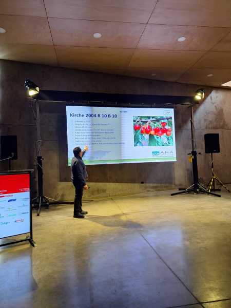 Luego, Walter Masman, reconocido asesor de la industria, ofreció una amplia mirada sobre los datos agroclimatológicos de los últimos años y de la temporada en curso, y expuso datos del comportamiento de las variedades respecto a su sensibilidad a la acumulación de horas de frío, y de temperatura acumulada en primavera, junto a un estudio de germinación de polen de las distintas variedades, haciendo una correlación sobre la productividad final.